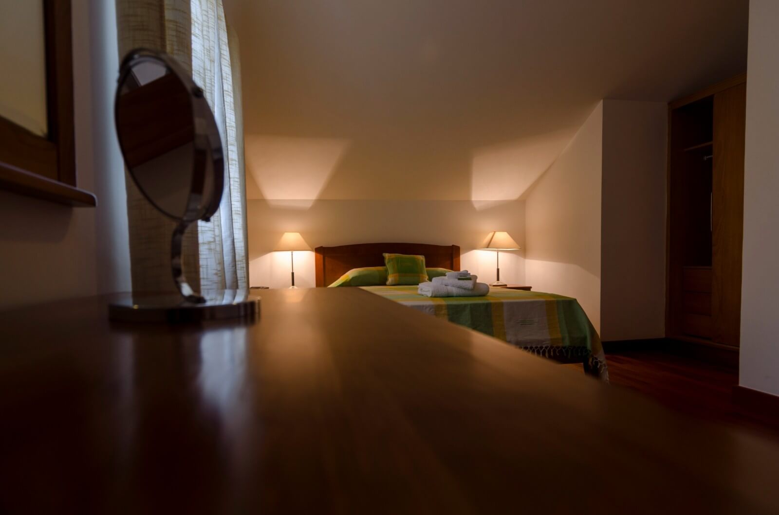 A casa tem dois andares. No piso térreo, uma sala com sofás, mesa de jantar e lareira, acompanhados por uma cozinha com uma porta de acesso ao jardim. No primeiro andar um quarto muito espaçoso e uma casa de banho completam o leque de conforto que vai precisar para uns momentos a só ou muito bem acompanhado. A casa tem TV Cabo e Wi-Fi.